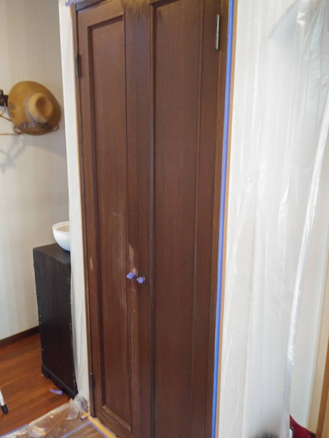 宝塚市のT様邸で木製扉の枠塗装をおこないました。